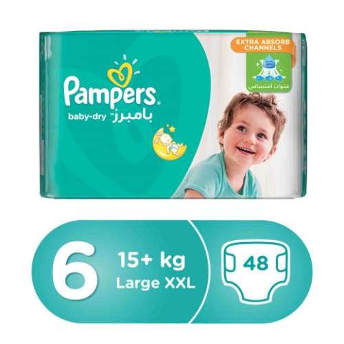 حفاضات بامبرز اكتيف بيبي دراي ، العبوة الضخمة ، كبير جدا ، مقاس 6 ، 15+ كجم ، 48 حفاضة – Pampers Active Baby Dry Diapers, Mega Pack, Extra Large, Size 6, 15+ Kg, 48 Diapers