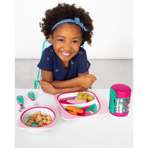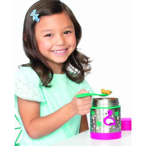 This colorful stainless steel container keeps kid-sized portions warm or cold. Store the spork, or most utensils, in the handy built-in holder so your little one is ready for meals on-the-go.