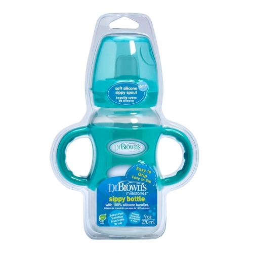 زجاجة 270 مل برقبة عريضة + مصاصة بمقابض سيليكون من دكتور براون ، اخضر – Dr. Brown’s 270 ml Wide-Neck Options+ Sippy Bottle w/ Silicone Handles, Green