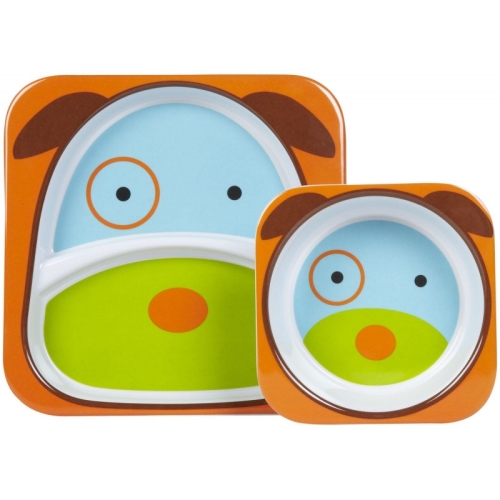 طقم أطباق وسلطانية مقسّم ميلامين بيبي لإطعام الأطفال الصغار وحديثي المشي من سكيب هوب زو، الكلب – Skip Hop Zoo Melamine Plate and Bowl Set – Dog