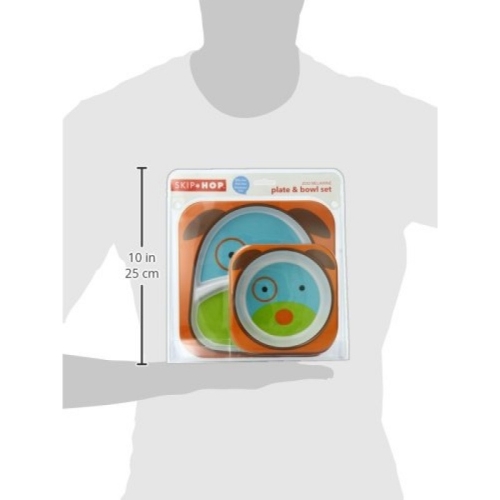 المواصفات: طقم أطباق وسلطانية مقسّم ميلامين بيبي لإطعام الأطفال الصغار وحديثي المشي من سكيب هوب زو، الكلب – Skip Hop Zoo Melamine Plate and Bowl Set – Dog