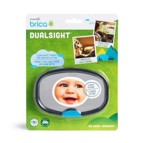 Connect with your little one as you drive with the BRICA DualSight™ Mirror. With a super clear, reflective surface and at fifty-five percent larger than our previous model, a quick glance in the mirror gives you a full, high-quality view of what’s happening in the back seat. With flexible attachment options that work with both front-facing and rear-facing car seats to keep it securely in place, this extra-large mirror gives you peace of mind (along with so many smiles, giggles and funny faces) as you go.